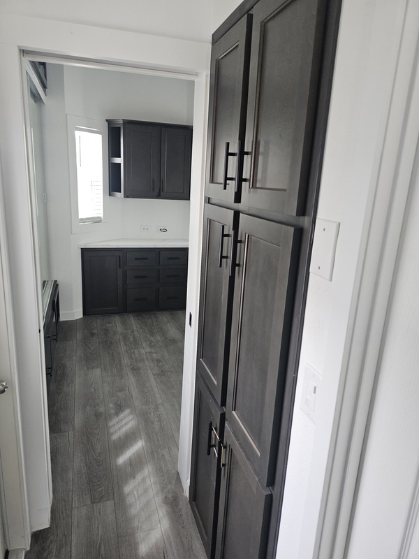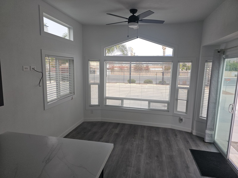 Large front living rm., dining bay area, alley galley kitchen w/breakfast bar, side bath, rear queen sized bedroom, sleeps 4