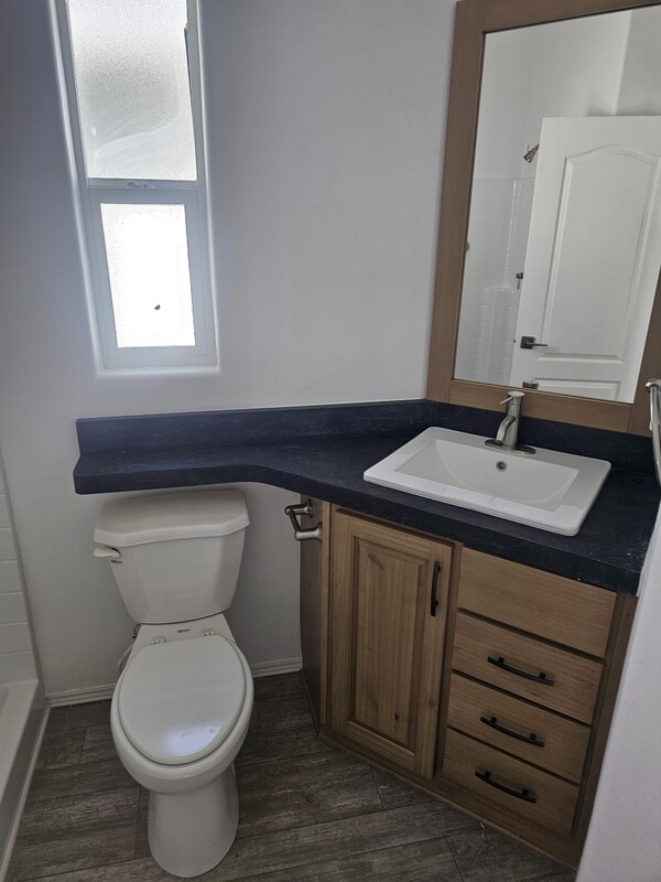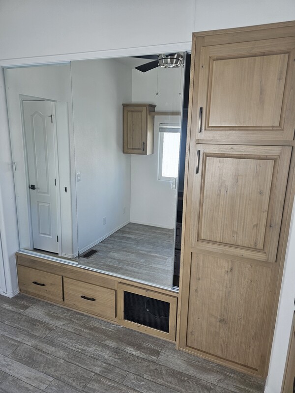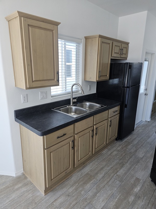 Large front living rm., alley galley kitchen, side bath, rear queen sized bedroom, sleeps 4