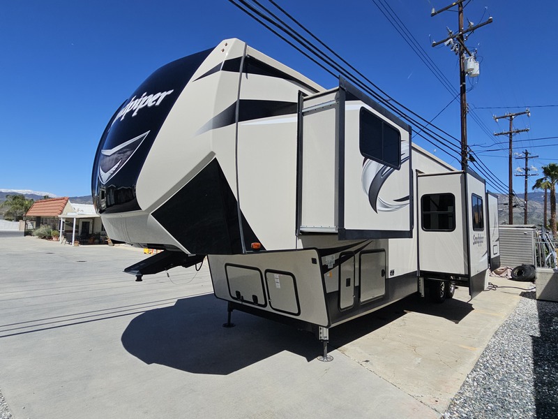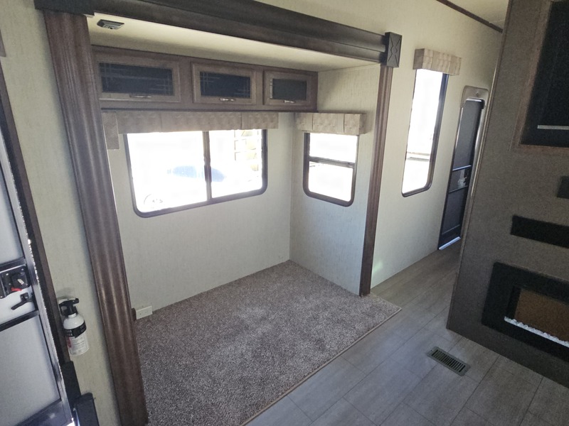 Front kitchen w/dbl. slide, mid-living rm w/couch slide & opposing slide, side bath, rear queen bed slide, sleeps 4-6