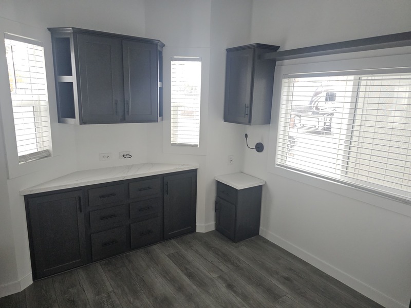 Large front living rm., dining bay area, alley galley kitchen w/breakfast bar, side bath, rear queen sized bedroom, sleeps 4
