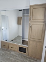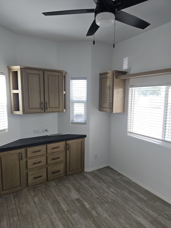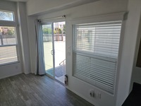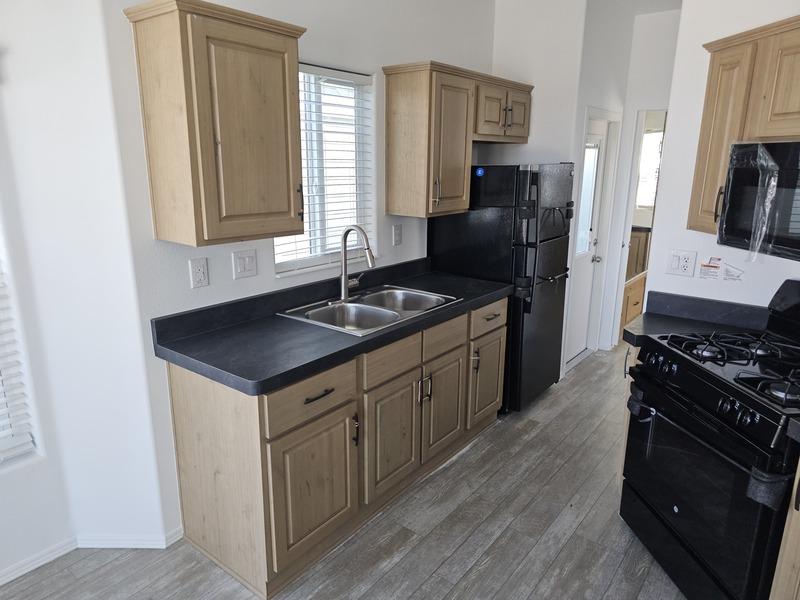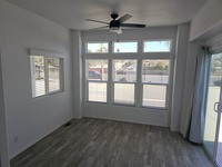 Large front living rm, dining area, alley galley kitchen, side bath, rear queen sized bedroom, sleeps 4