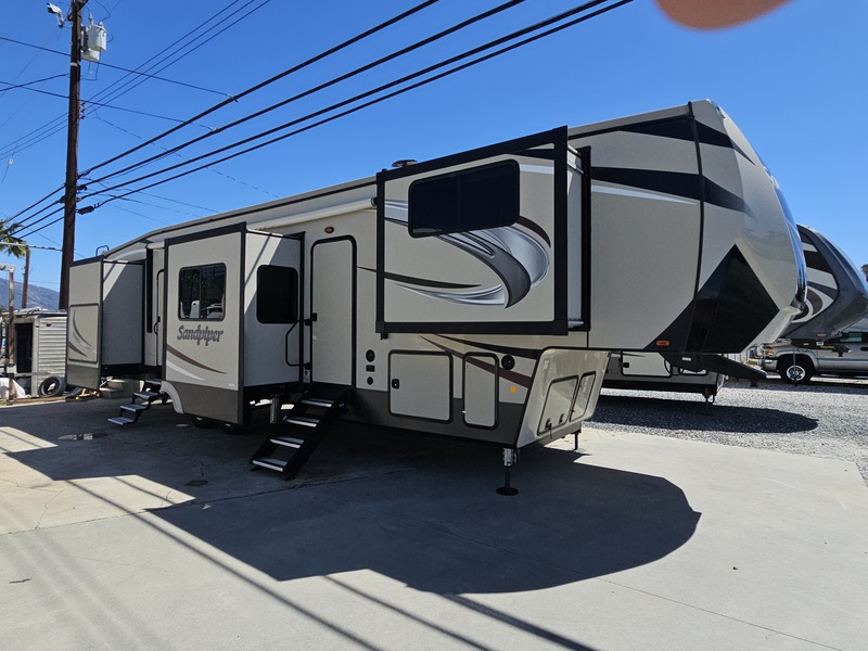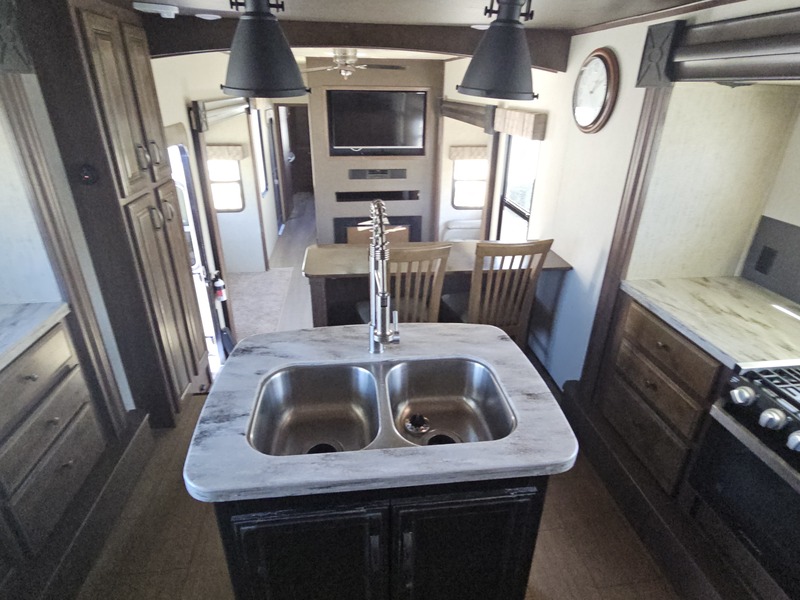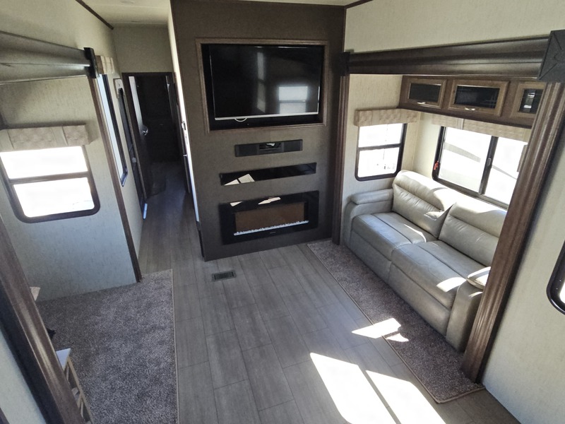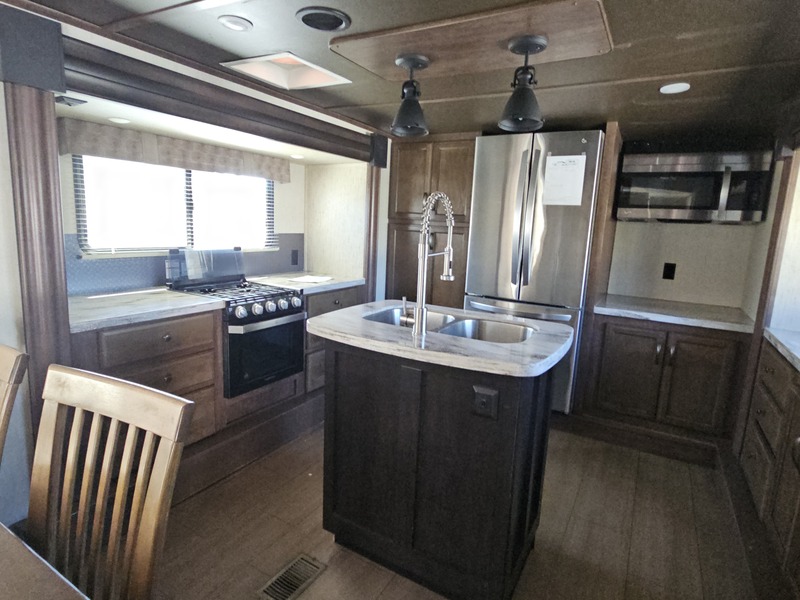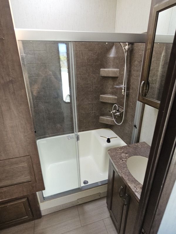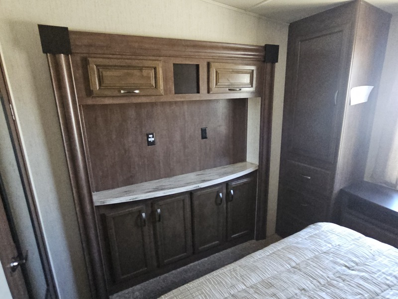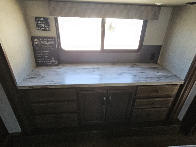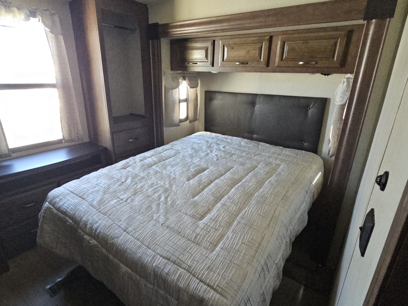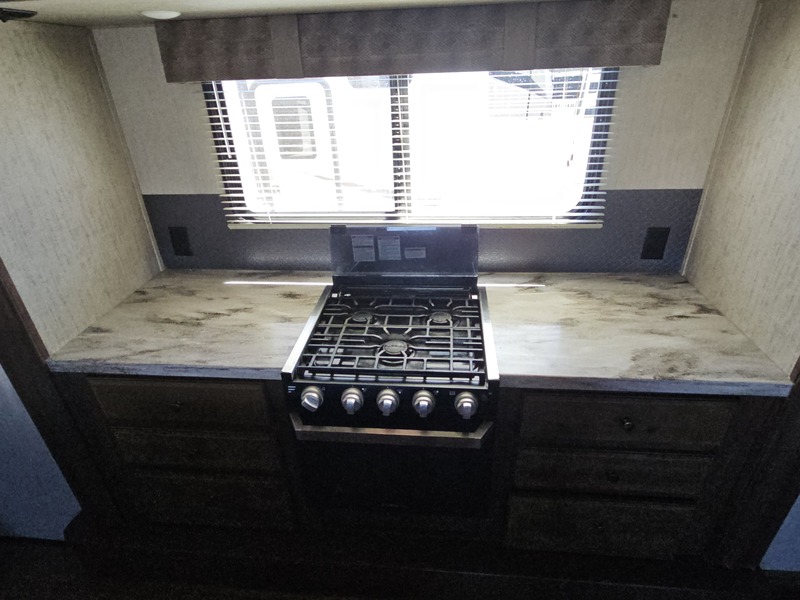 Front kitchen w/dbl. slide, mid-living rm w/couch slide & opposing slide, side bath, rear queen bed slide, sleeps 4-6