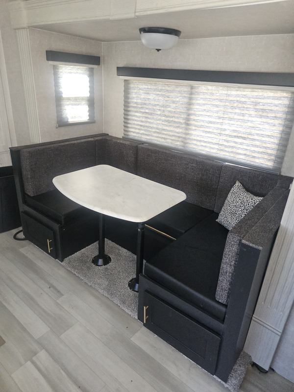 Extremely clean single slide travel trailer, rear kitchen, U-shaped dinette slide out, opposing couch, mid-side bath, front queen isle bedroom, sleeps 6.